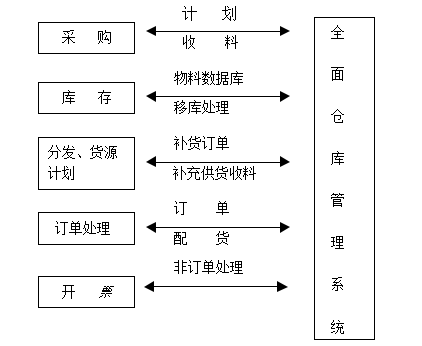 计算机管理系统,尤其对现代制药厂的高架货位管理是十分必要。该系统多是全公司联网管理,以达到全面控制、信息共享。如果能正确使用网络系统,则可以做到库存降低、资金合理流动,把营销、生产、库存、采购、财务、分发和运输等全面控制起来,减少差错和失控。如BPCS 系统的软件,它的仓库管理的模式如下图所示: