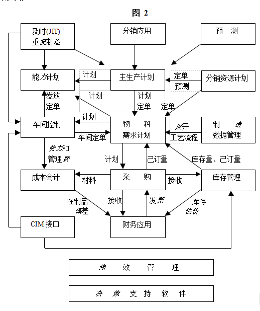 另一种属生产资源系统(MRPⅡ)是计算机集成生产系统(CIM)信息集成的支柱,涉及到生产计划、物流管理(物料清单、物料需求计划、库存管理等)、能力管理和能力需求计划、生产现场管理、财务管理(包括成本管理)、及时生产管理(JIT)等。