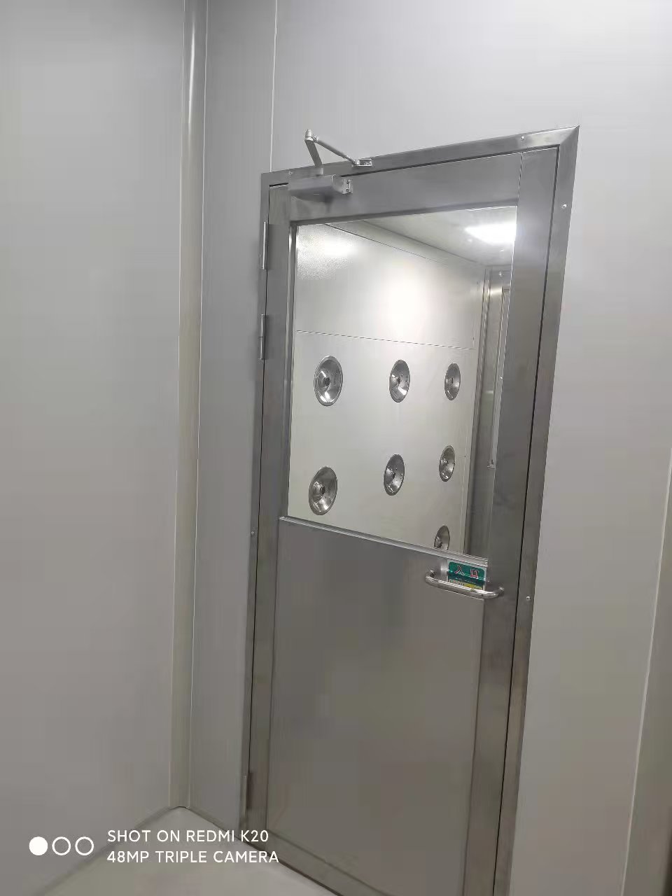 1、光电感应控制,实现自动吹淋(吹淋时间可调0-99s)。可有效防止人员及物品表面尘埃进入洁净室。