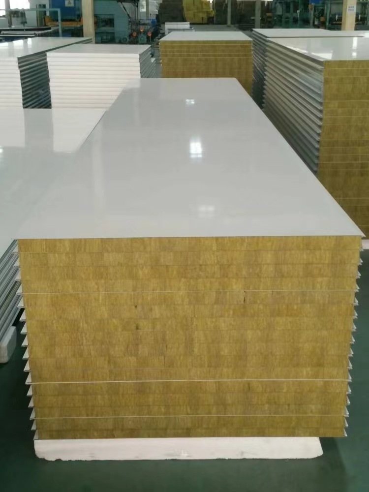 岩棉夹心彩钢是以彩色涂层钢板为面材,以岩棉为芯材,用热固化胶在连续成型机内加压复合而成的防火建筑板材。岩棉又称岩石棉、是矿物棉的一种,一天然岩石及矿物等原材料制成的蓬松状短细纤维,不可燃。