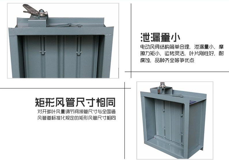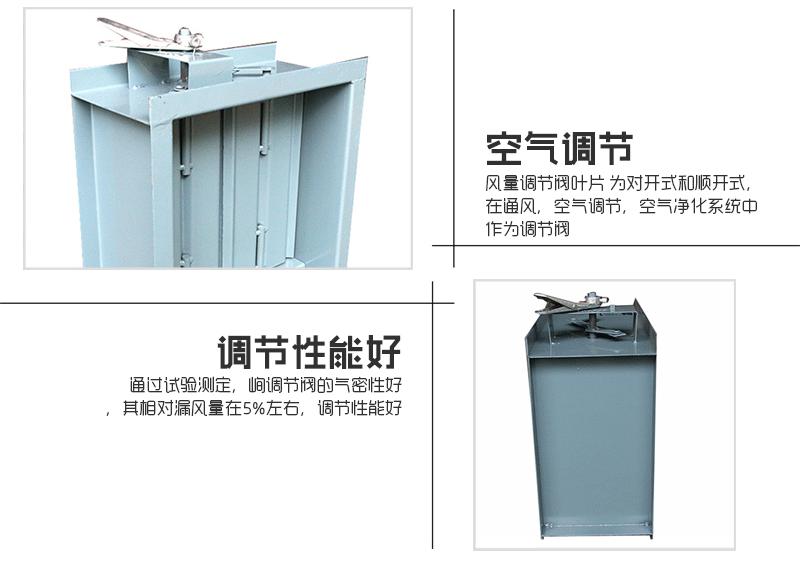 1、镀锌板调节阀:采用镀锌板冷轧成型复合而成,耐腐蚀、刚性好,
