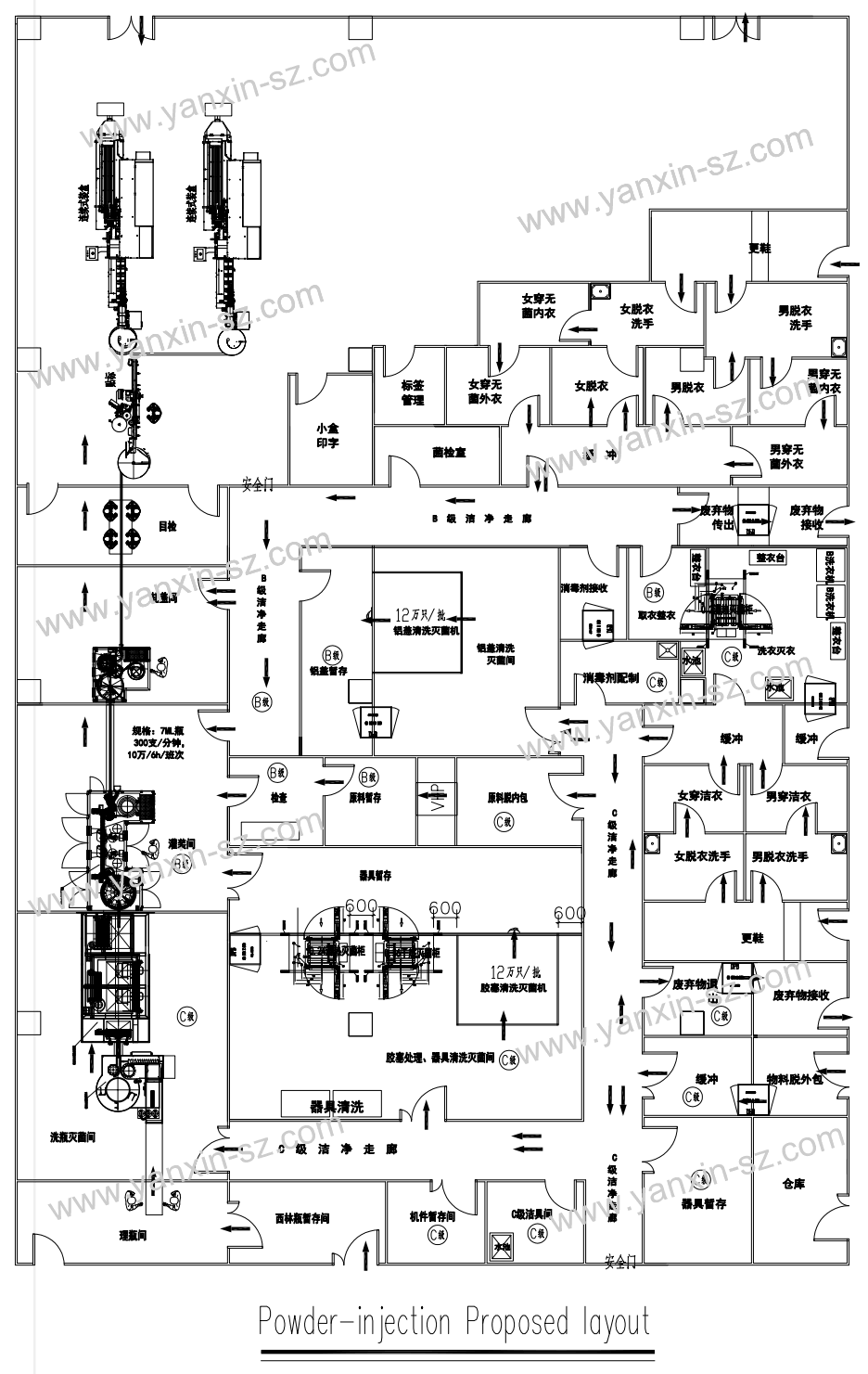 粉针无菌分装工艺平面设计